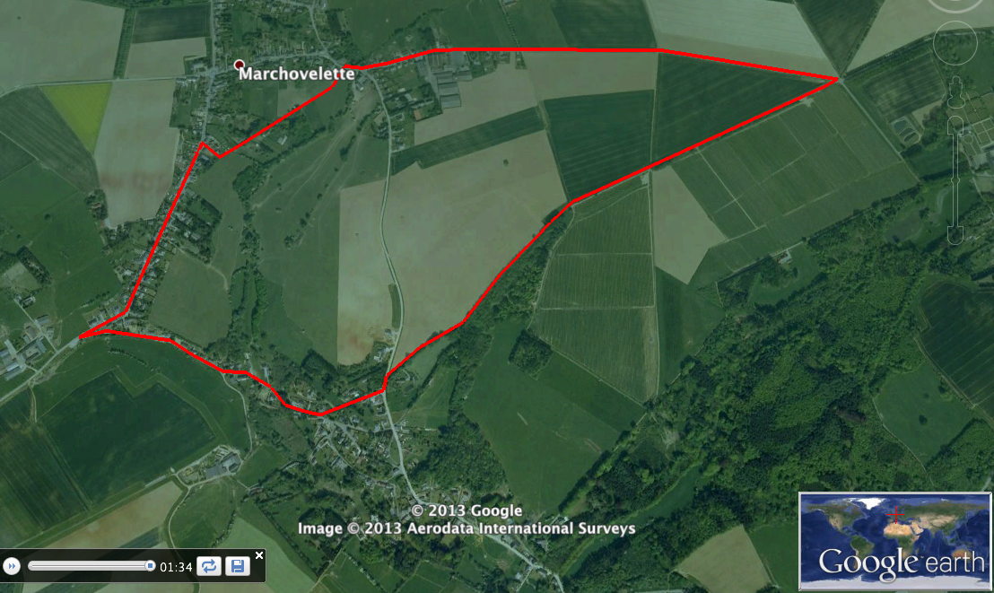 - A bucolic 3.5 mile loop from my dad's place in Belgium. The kml file is based on a RunKeeper