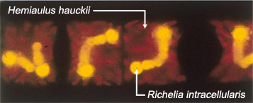 - We have found that the peculiar association of Richelia intracellularis, a nitrogen fixing organism, with the diatom Hemiaulus hauckii (pictured below; image by D. Caron) can increase the efficiency of carbon export at least twofold in the plume. They account for at least half (and sometimes more than 70%) of the carbon export when they "bloom". These results demonstrate the profound impact that patchy blooms of these species can have on the carbon balance of the Amazon river plume, although it's still not clear under what conditions exactly that these phytoplankton will start blooming. Hemiaulus and Richelia are found nearly everywhere in the oceans, however, so there is a good chance that they play a larger role in both the nitrogen and carbon budgets of the ocean than previously recognized. Link to GRL article