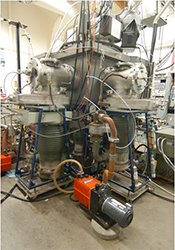 I study the dynamics of CO2 isotope-exchange reactions at high collision energies. This is done by sending two molecular beams hurtling towards each other and analyzing the reaction products. The apparatus in Tim Minton's lab at Montana State University looks kind of like this: